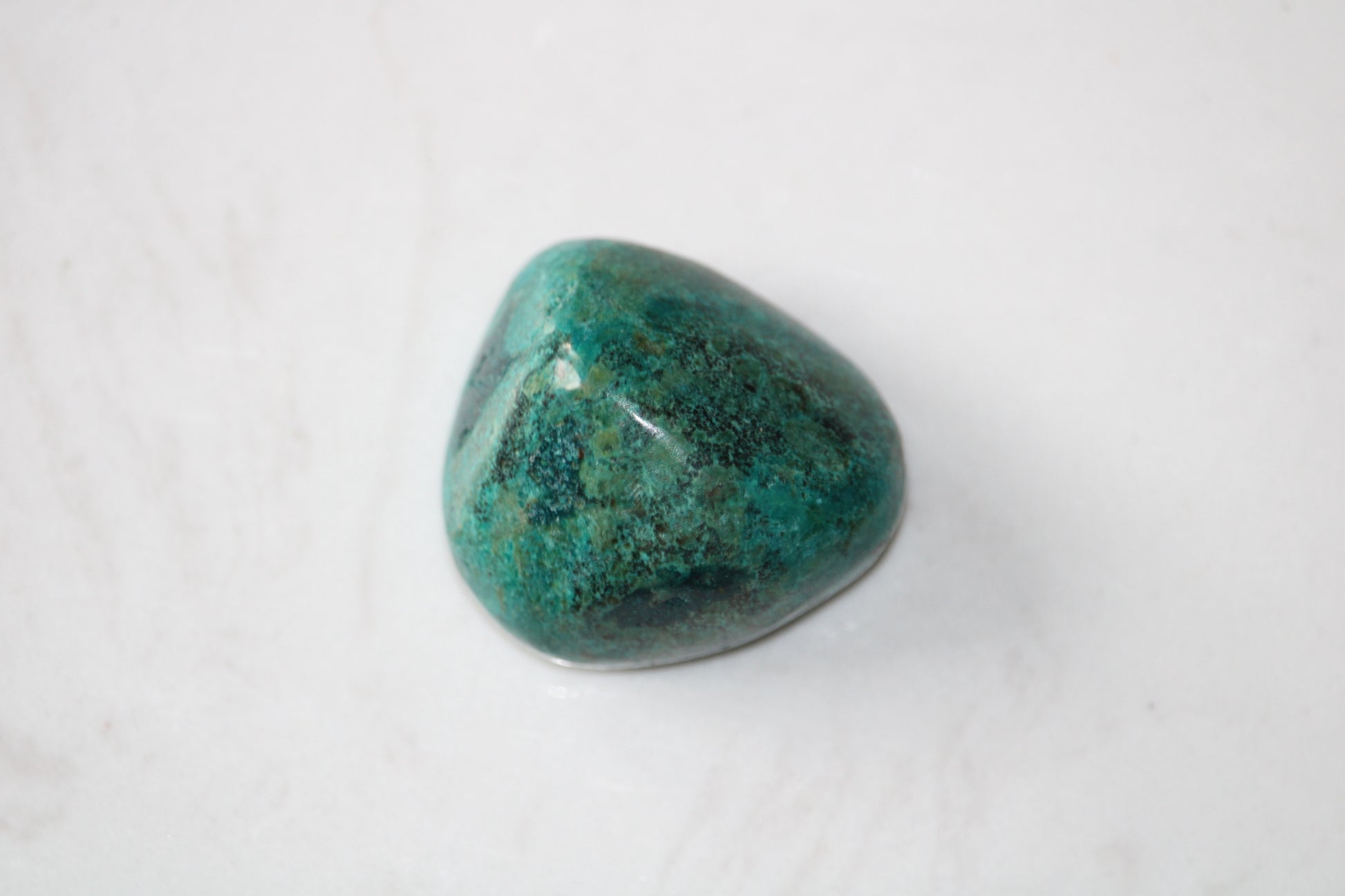 Magnifiques pierres roulées en Chrysocolle, pierre naturellement positive dans son énergie et qui incite à la paix intérieure et extérieure.
