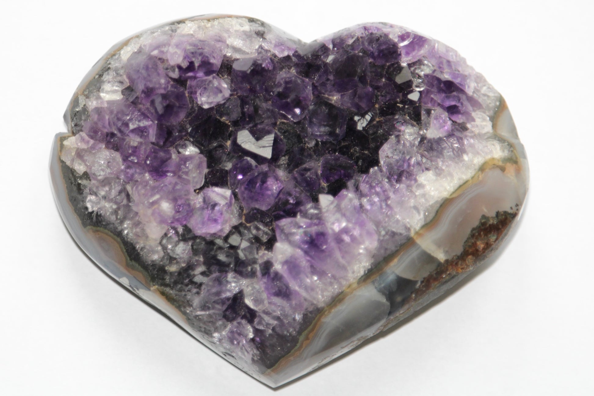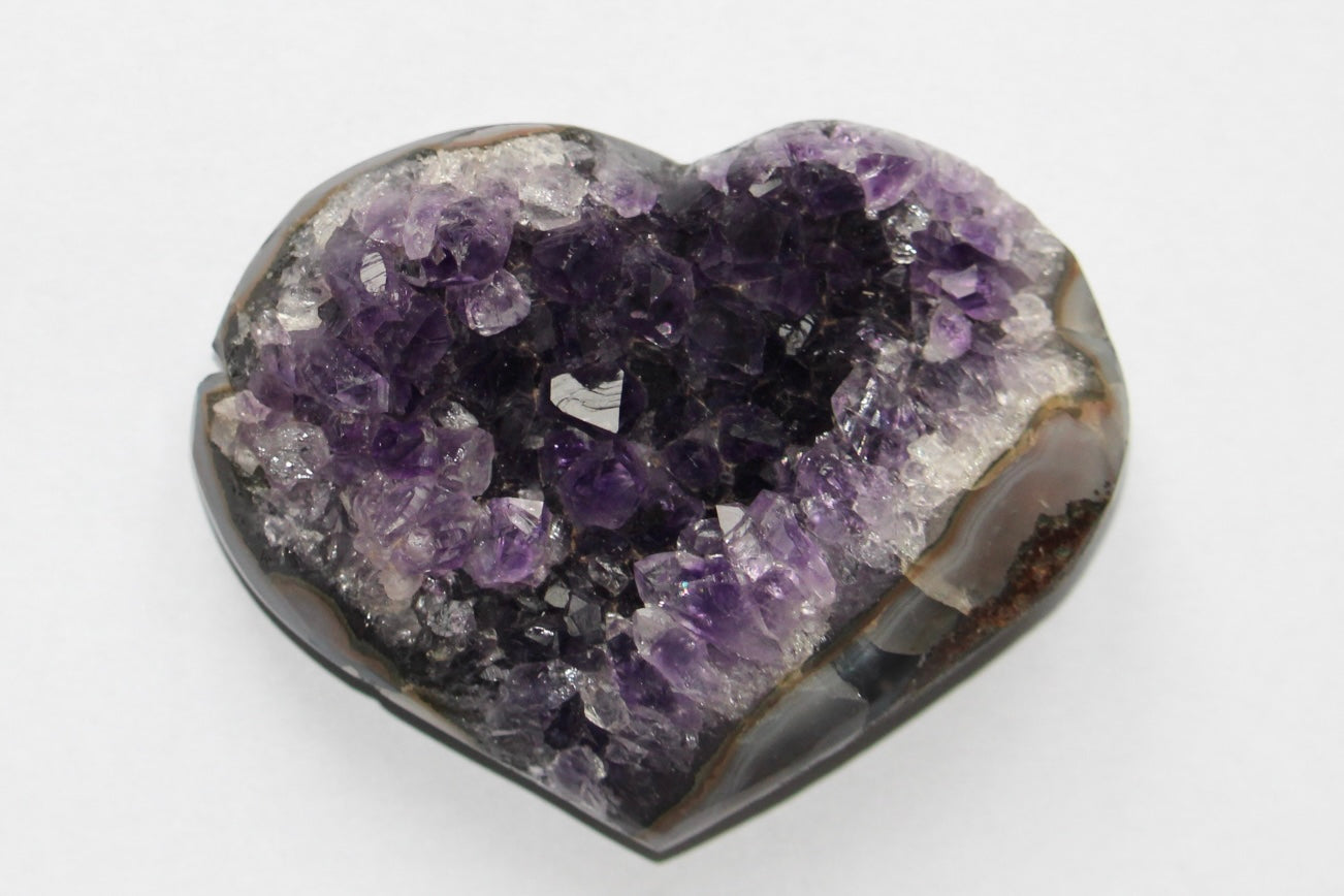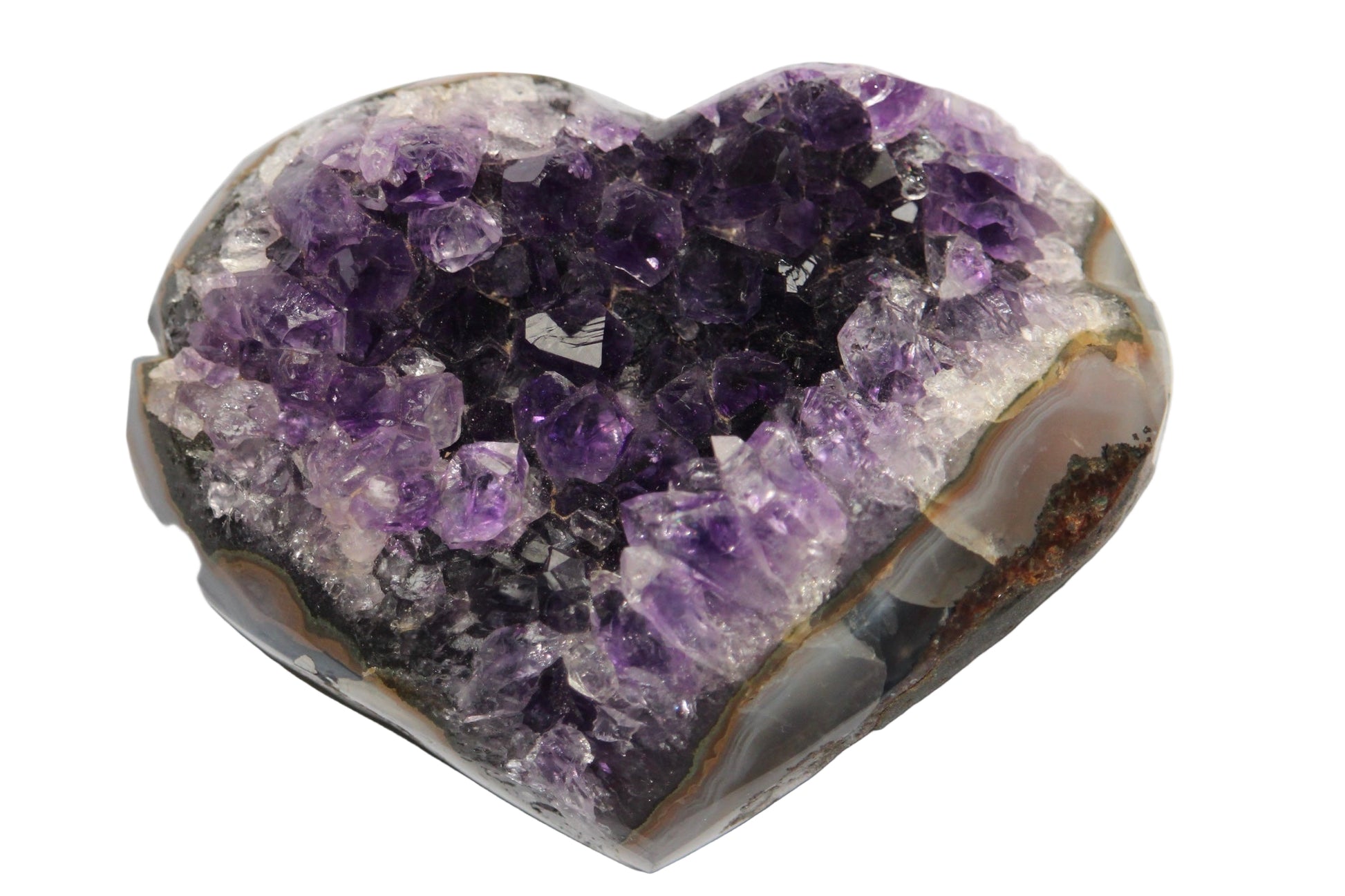 Magnifique pierre naturelle d'Améthyste taillée en forme de cœur en provenance d'Uruguay à poser dans votre chambre à coucher ou dans votre salon pour profiter de son énergie propice à la détente.