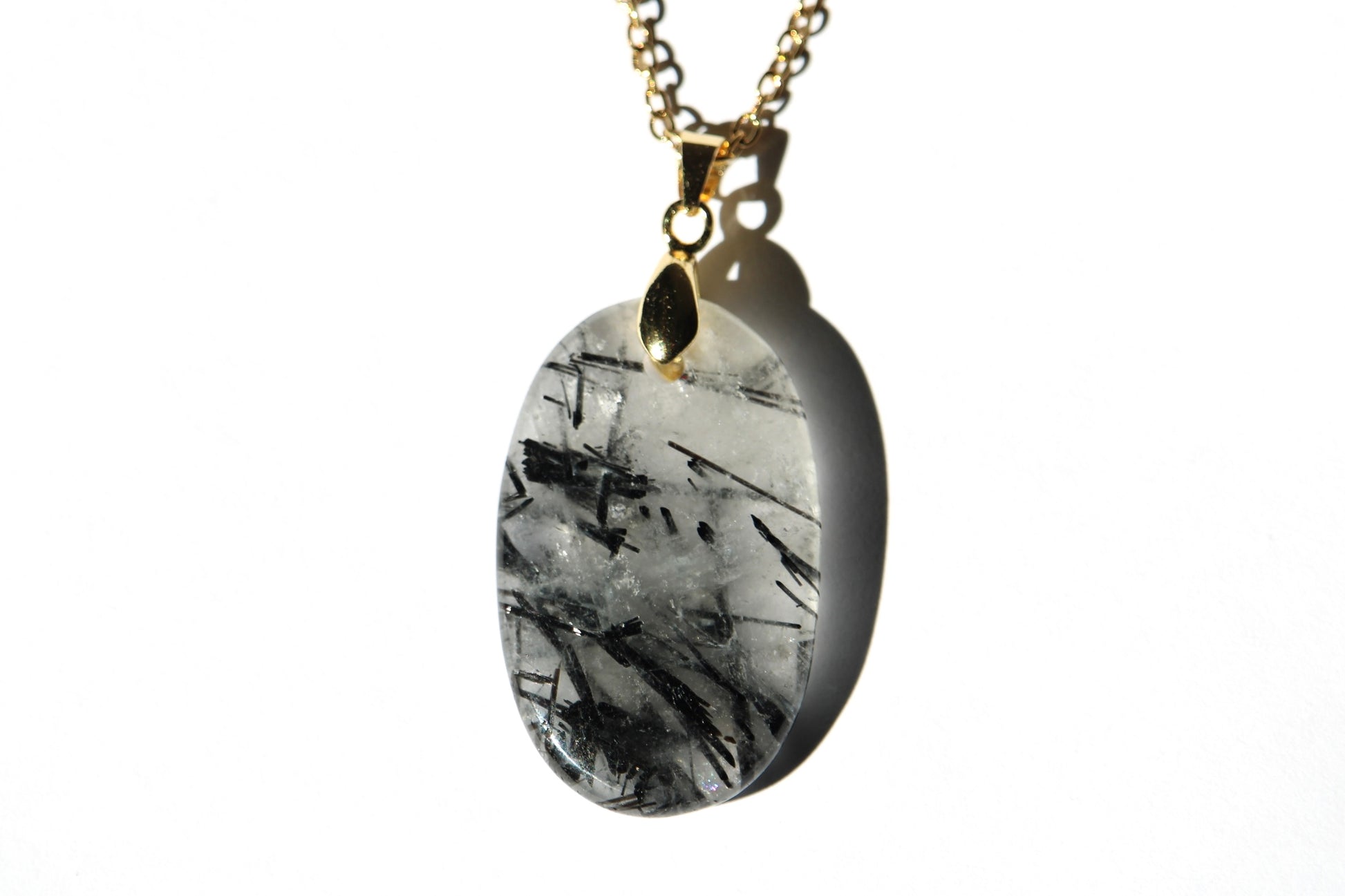 Magnifiques Collier en Cristal de Roche avec des Inclusions de Tourmaline Noire , le cristal de roche amplifie les énergies de la tourmaline noire, ce qui fait d'elle une puissante pierre d'ancrage et de protection.