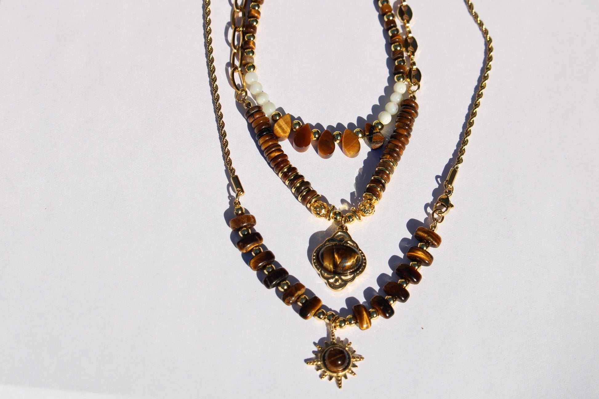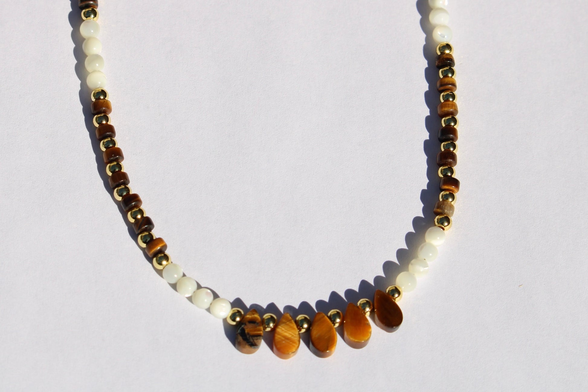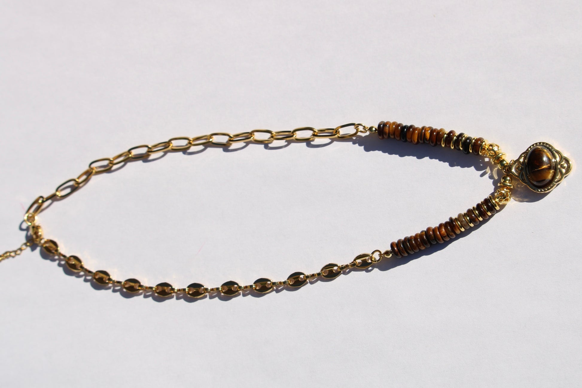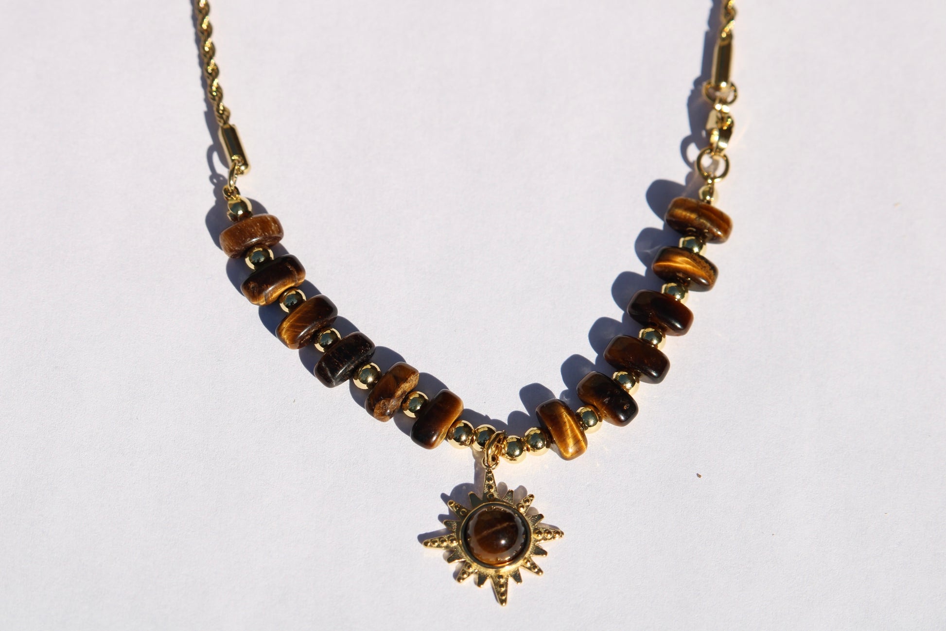 Magnifique Collier en Oeil de Tigre, idéal pour les personnes qui souhaitent affirmer leur confiance en soi.