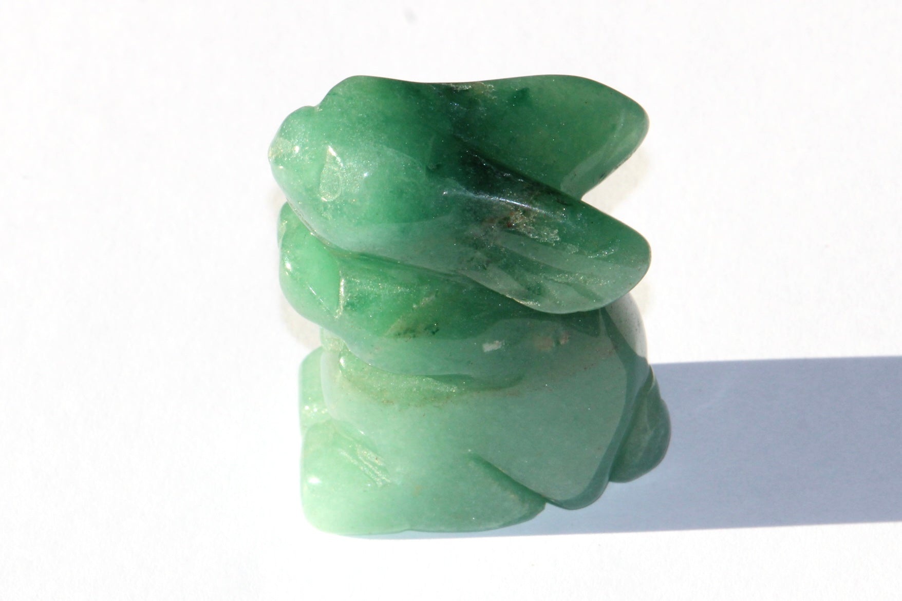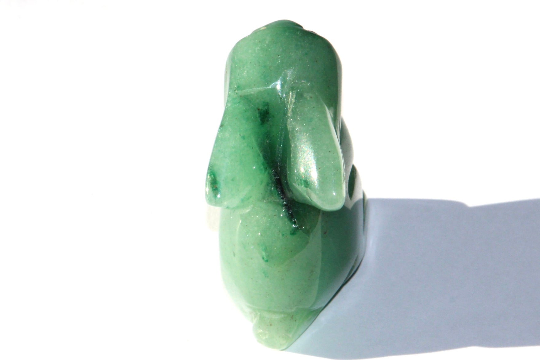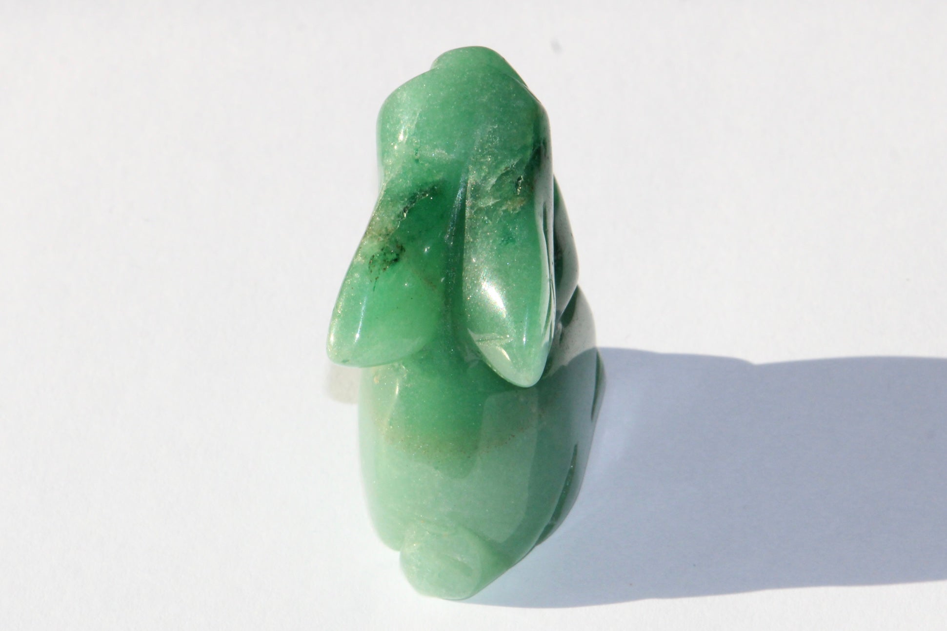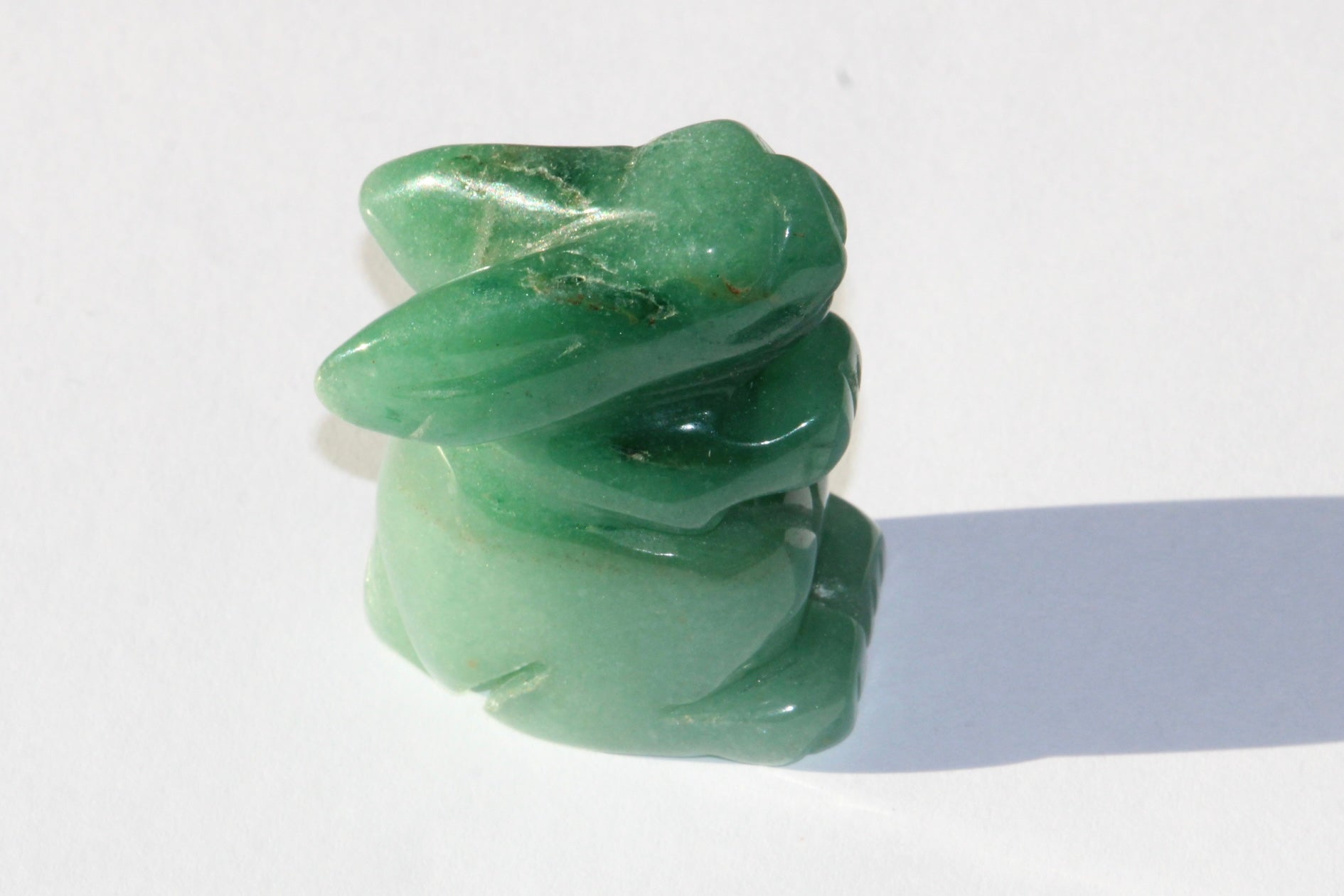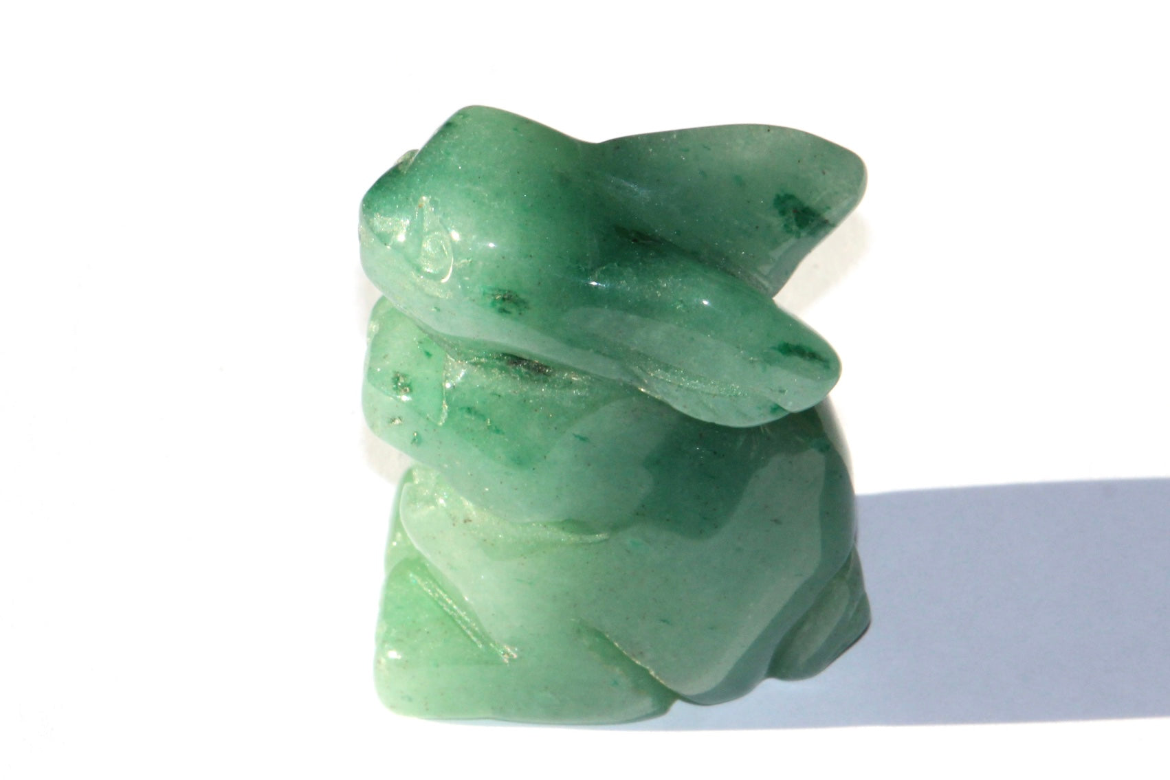 Magnifique petit Lapin taillé dans la pierre d' Aventurine Verte, très positif, sur dit d'elle que c'est une pierre qui tient la chance et la prospérité .