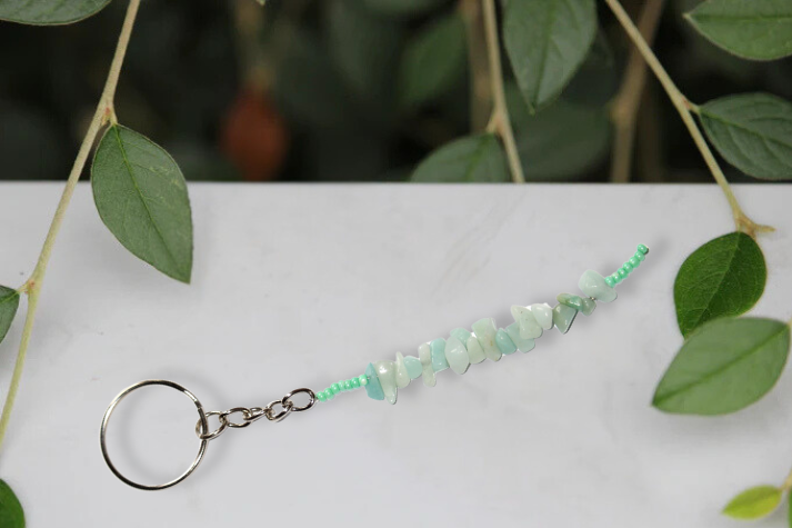 Le porte-clés en Pierre d’Amazonite est une création artisanale.