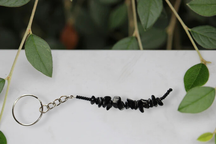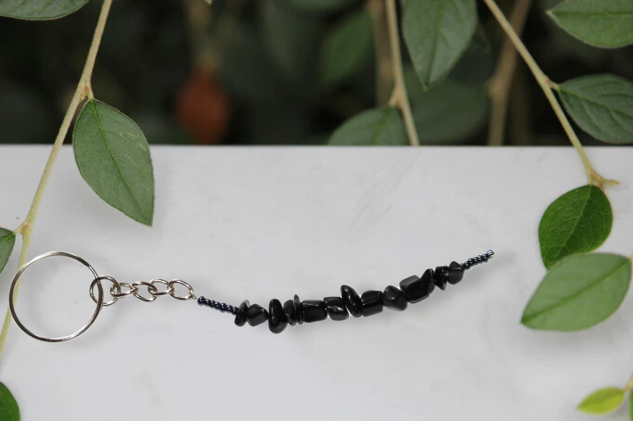 Magnifique Porte-clés en Pierres Naturelles d’Onyx noir, une puissante pierre de protection, idéale pour vous accompagner partout.
